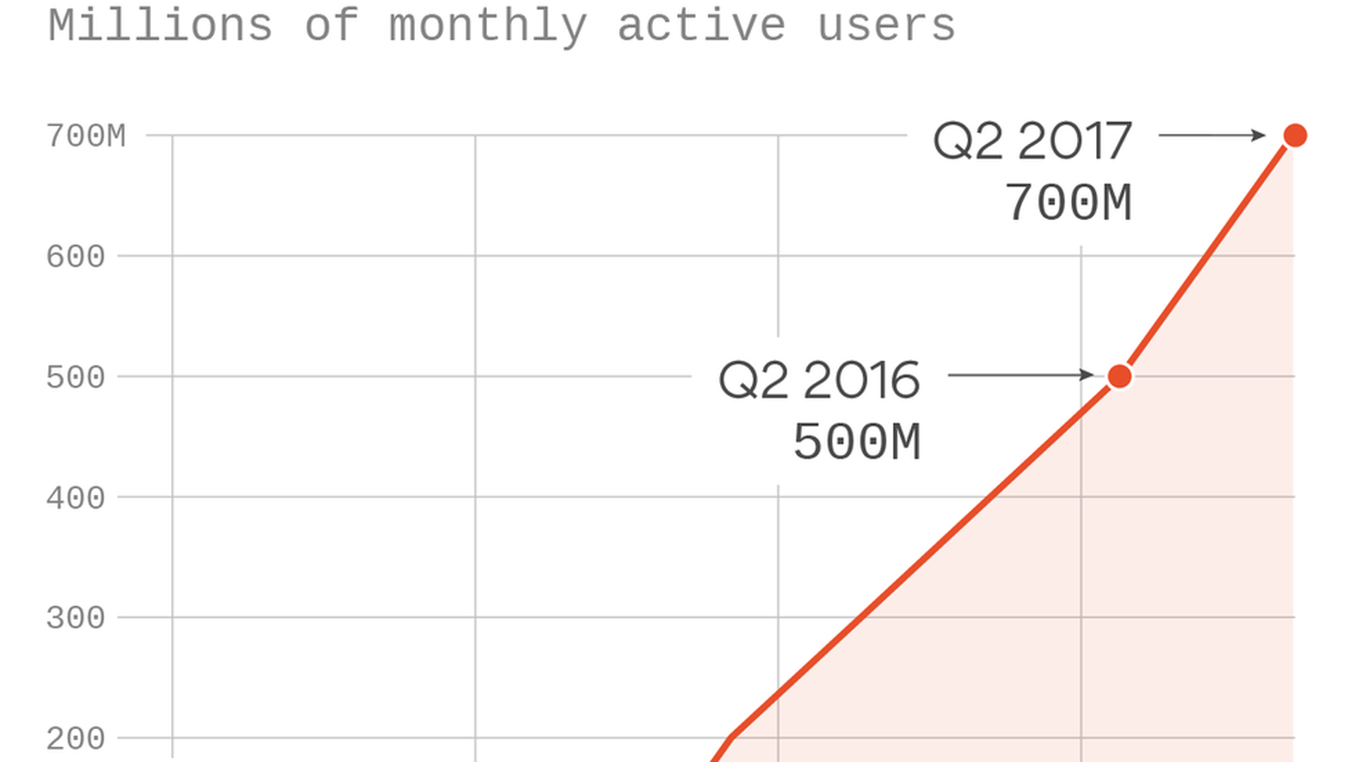 Instagram announced that it has amassed 700 million monthly active users since launching in 2010, a more than 16% increase in just four months, and a 40% increase in one year, Axios' Sara Fischer writes: