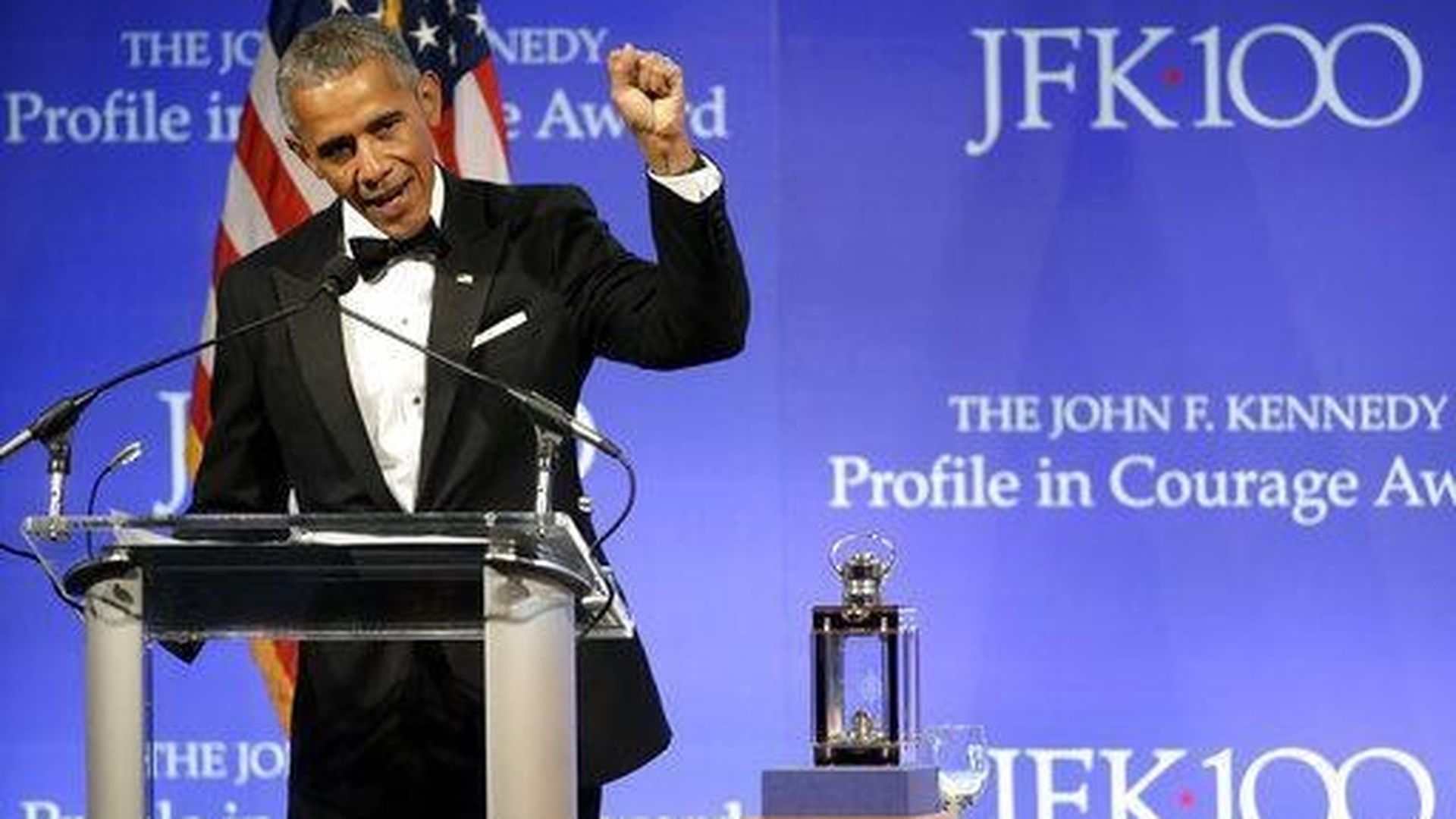 Making it clear that he plans to keep a higher profile than the last ex-president, President Obama targeted Congress as he spoke in Boston last night at the John F. Kennedy Presidential Library and Museum, accepting the annual Profile in Courage Award.