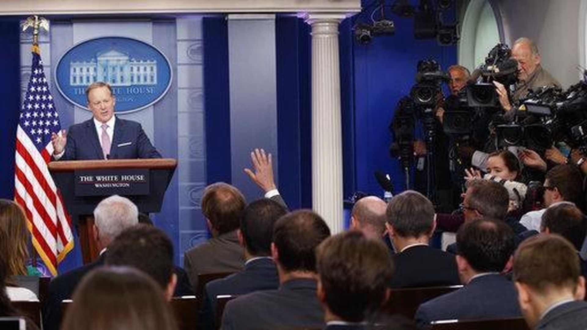 Trump: Well, just don't have them. Unless I have them every two weeks and I do them myself, we don't have them. I think it's a good idea. First of all, you have a level of hostility that's incredible and it's very unfair. Sarah Huckabee is a lovely, young woman. You know Sean Spicer: He is a wonderful human being, he's a nice man.