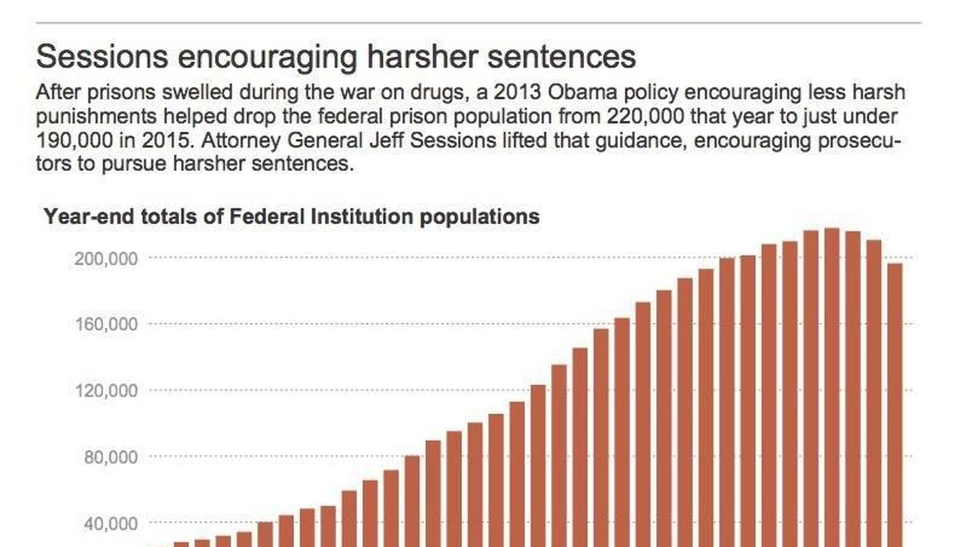 - "The new ... policy cancels the Obama administration's attempts to pull back on harsh sentencing strategies, which had produced a huge growth in prison populations."