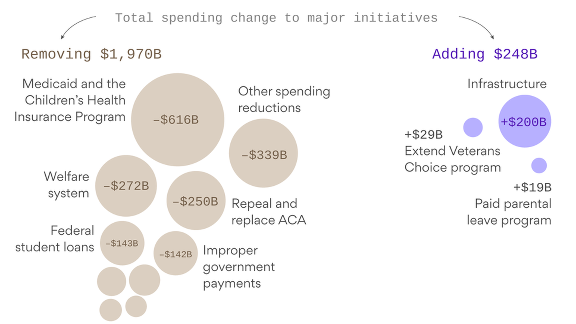 Thought bubble from Axios' Jonathan Swan and David Nather: "Presidential budgets are aspirational political documents. None of these cuts (or increases) will happen without Congress. Democrats will go along with none of this and Republicans are already wary. Congress is going to write its own budget, but realistically, they're not going to start completely from scratch either. They have to take the administration's priorities into account."