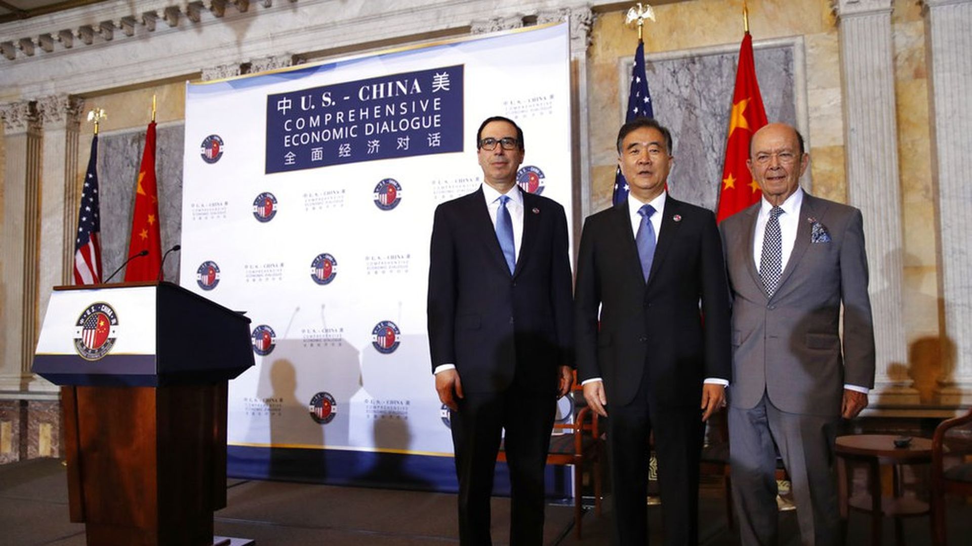 - "High-level economic talks in Washington broke up Wednesday with the two superpowers unable to produce a joint statement. Commerce Secretary Wilbur Ross scolded China over its trade imbalance with the U.S. in his opening remarks, and then both sides canceled a planned closing news conference."