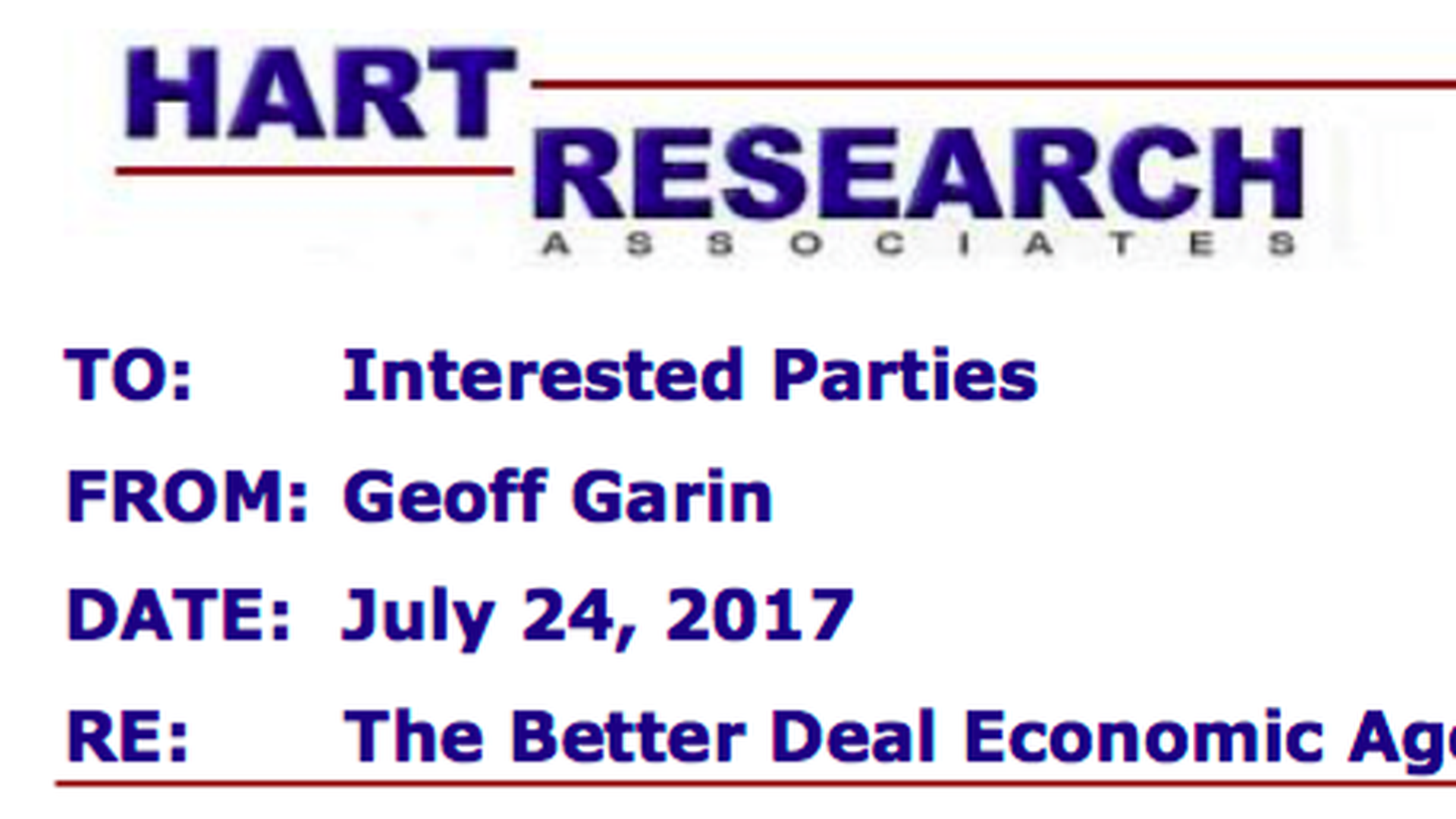 Pollster Geoff Garin writes in a memo kicking off the project: "[T]he Democratic policies related to curbing excessive corporate power that are being highlighted in the first day of the rollout have real resonance with voters and are strongly supported by a significant majority of Americans."