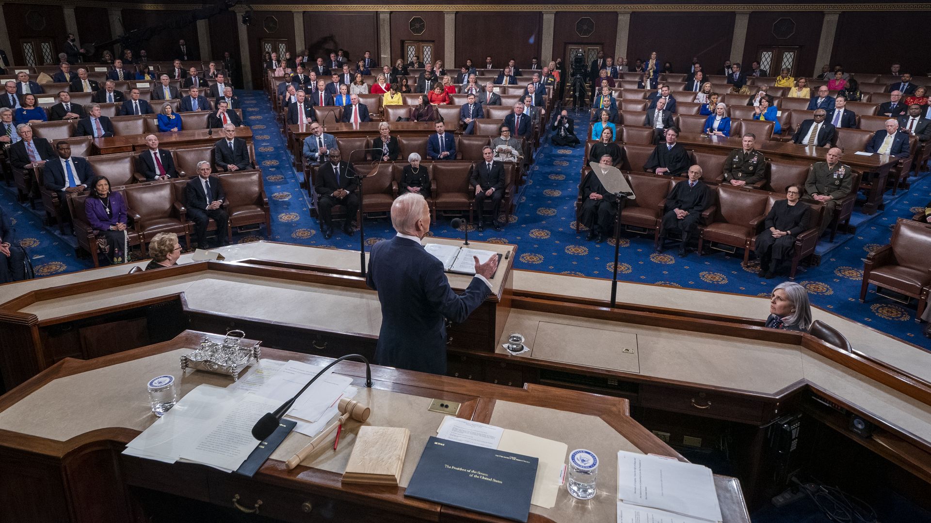 Why it matters: His speech was highly anticipated, given the crisis surrounding Russia's war in Ukraine. Biden announced new measures to sanction Russia during the address, including banning Russian planes from flying in U.S. airspace.
