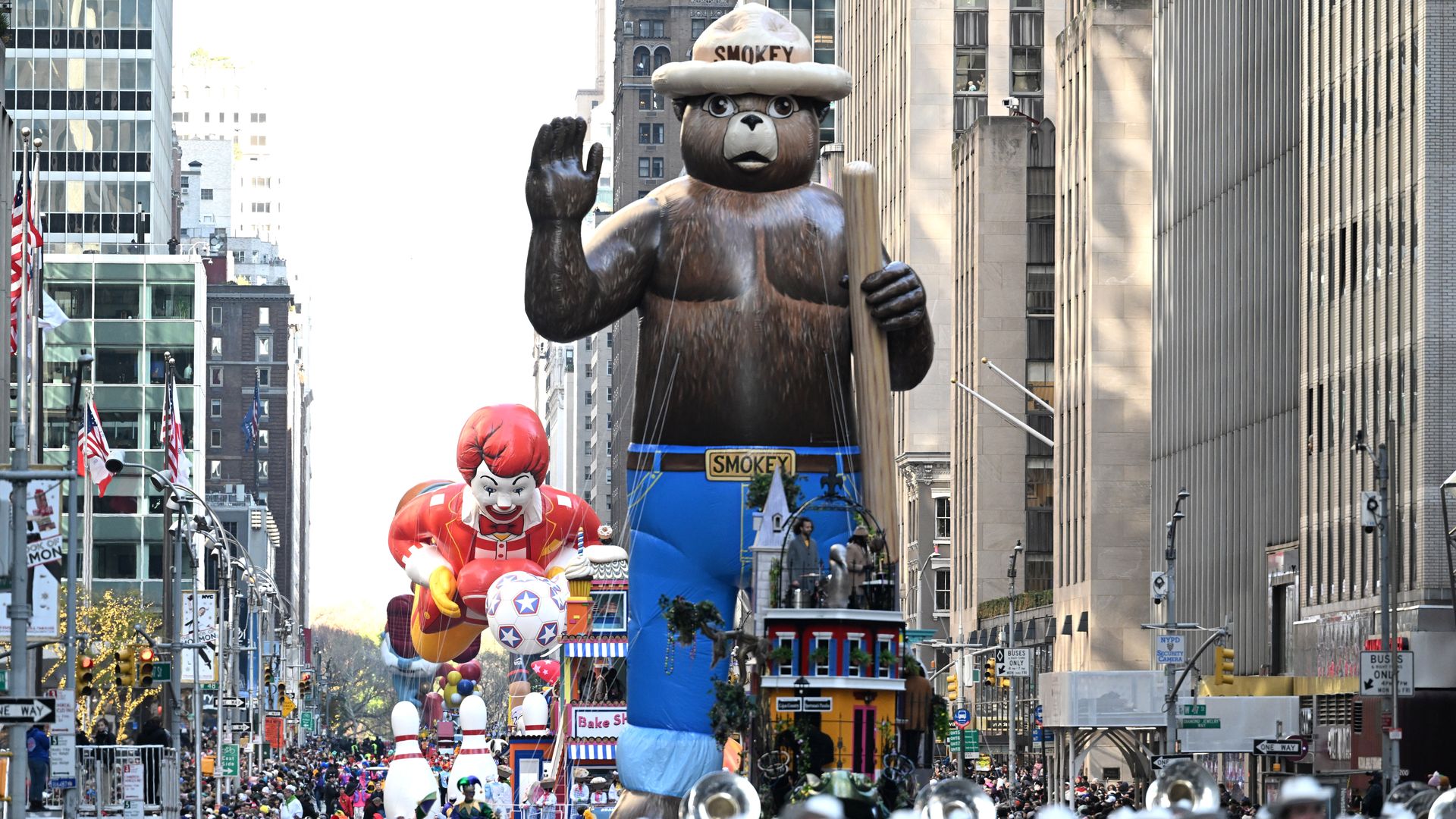 The big picture: The 96th annual parade featured "16 giant balloons, 28 floats, 40 novelty and heritage inflatables, 12 marching bands, 10 performance groups, 700 clowns and one Santa Claus," per AP.