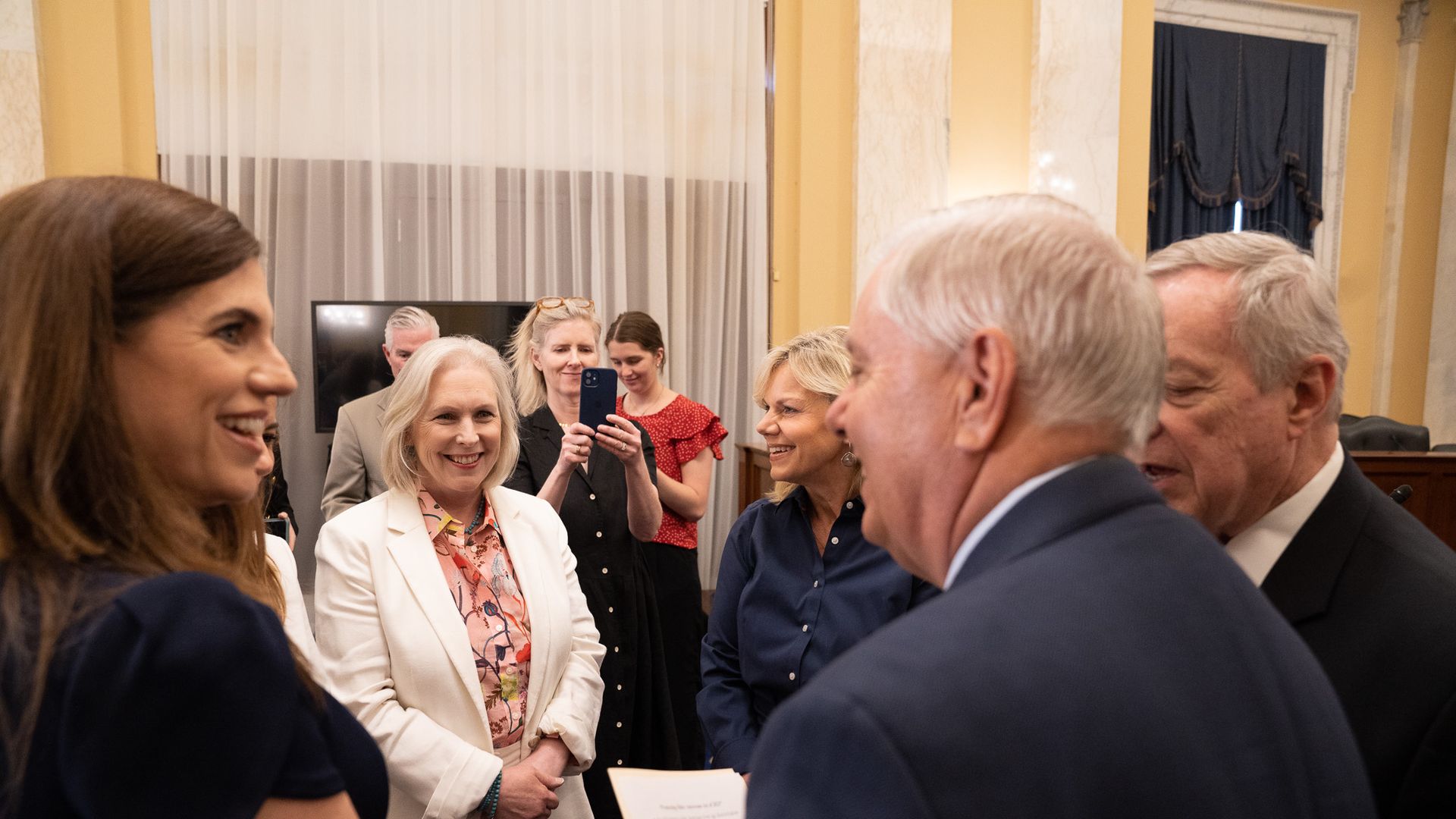 What's happening: SenatorsLindsey Graham (R-S.C.) and Kirsten Gillibrand (D-N.Y.) high-fived each other Wednesday afternoon at a press conference announcing the Protecting Older Americans Act.