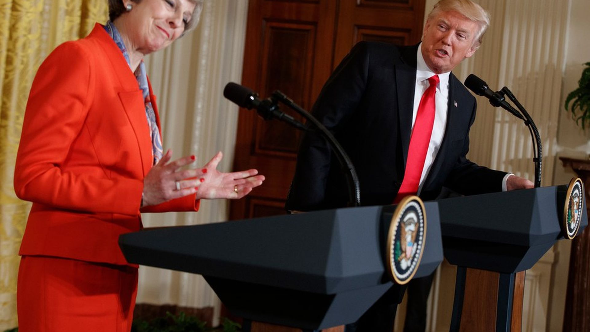 Separately: Yesterday May rebuked Trump for retweeting anti-Muslim hate videos from British far-right leader Jayda Fransen.