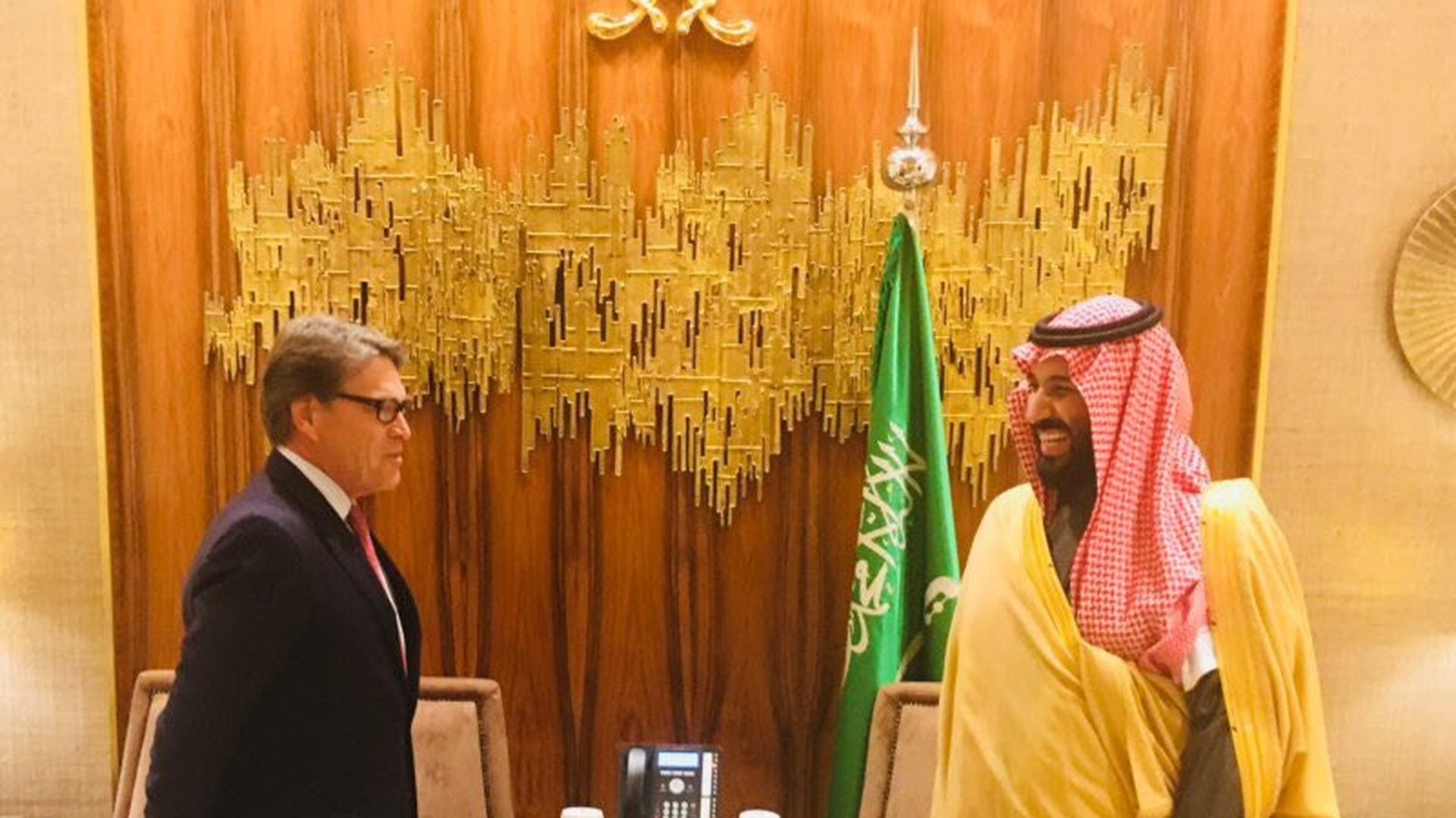 Energy secretary Rick Perry tweeted the photo above from his weekend meeting with Crown Prince Mohammed bin Salman (MBS), the heir to the Saudi throne. Perry met Monday morning with King Salman.