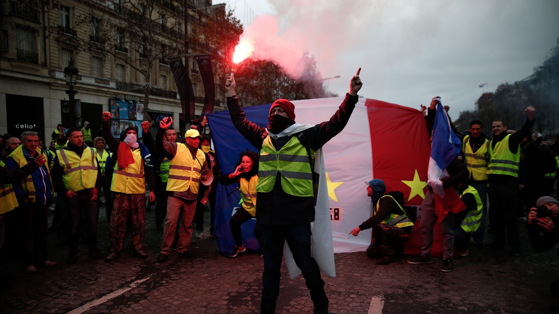 By the numbers, per the BBC: Roughly 125,000 people marched on Saturday. More than 1,700 were arrested. "Nearly 90,000 officers had been deployed, including 8,000 in Paris... Around 10,000 people demonstrated in the capital, where the scenes were the most destructive."