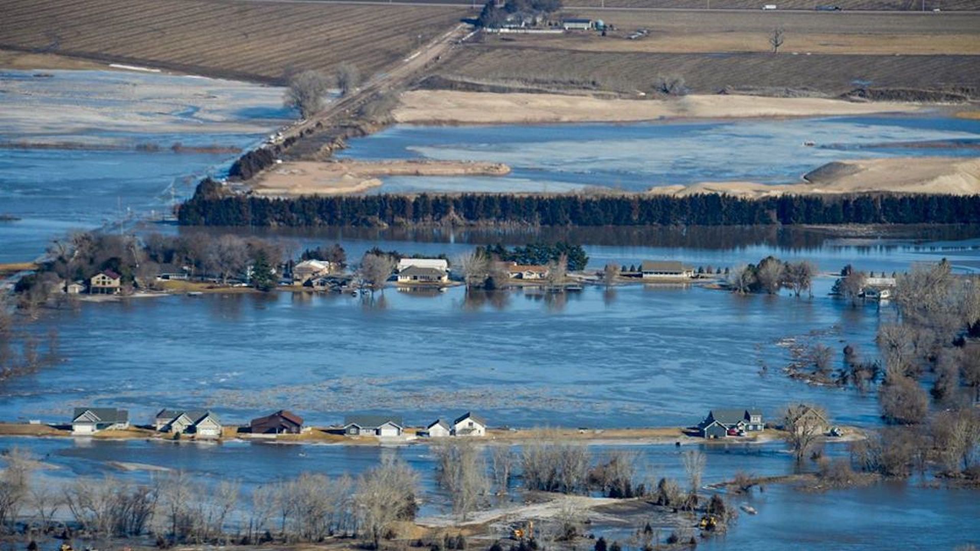 Why it matters: The floods have wiped out farms, killed an unknown amount of livestock, marooned entire towns and destroyed large infrastructure as rivers have risen, sending surges of water and chunks of ice churning downstream. While waters are receding in many locations in Nebraska, flooding is occurring further southeast into the Mississippi River Valley.