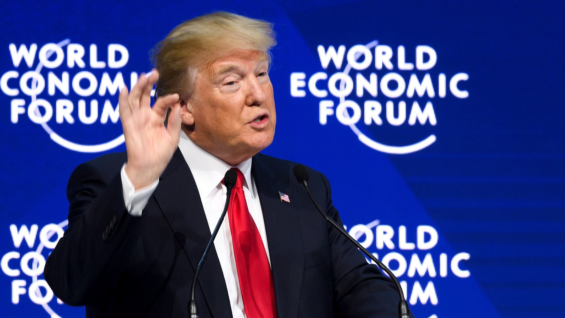 DAVOS, SWITZERLAND — President Trump diverged sharply from the tone of this week's World Economic Forum in at least two ways during his opening session speech on Tuesday — he was exuberant about the state of the U.S. economy and dismissive of the threat from climate change.