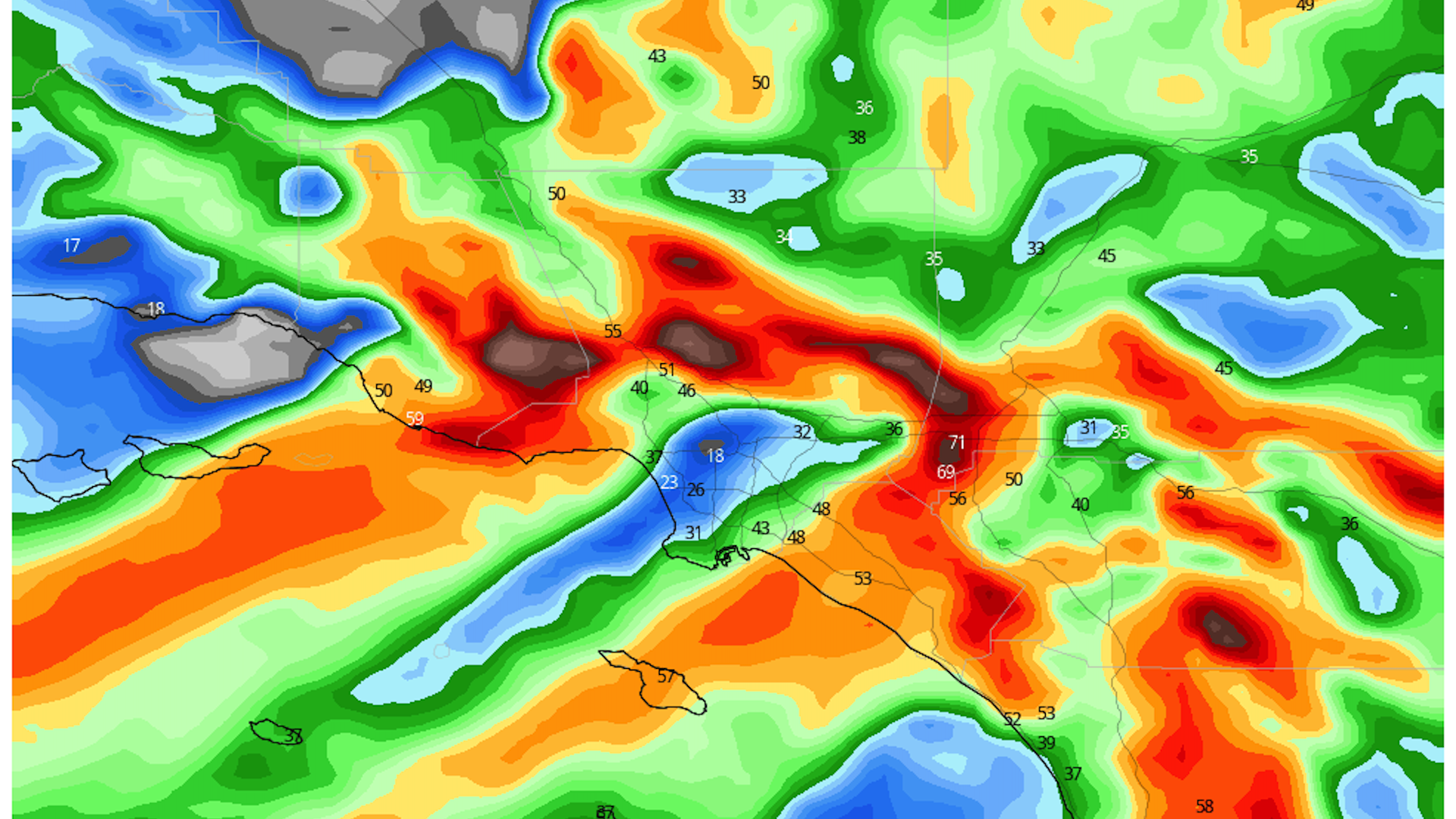Southern California is facing an intense Santa Ana wind event over the Thanksgiving holiday, with "critical" wildfire risk since very little rain has fallen in this region so far this wet season.