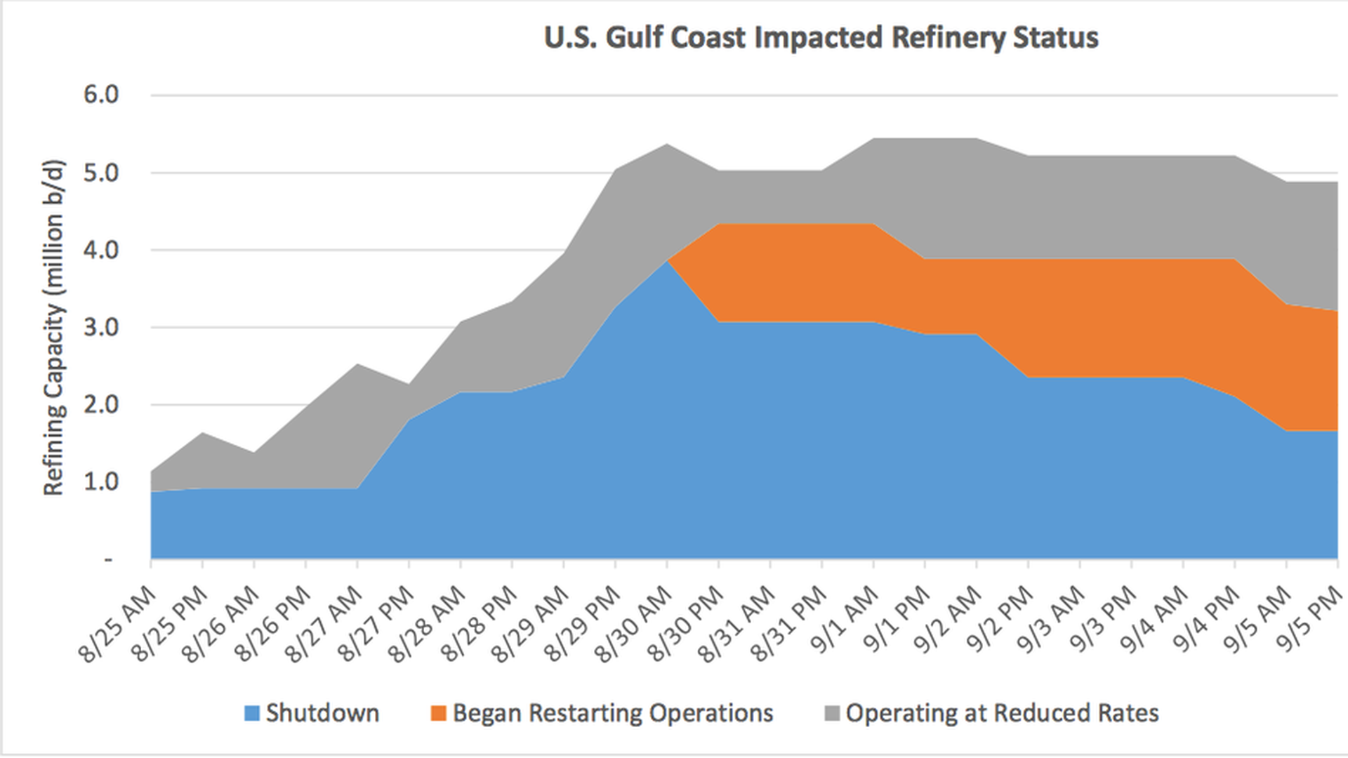 Harvey update: This Energy Department update yesterday afternoon looks at the status of Gulf Coast energy networks, including refineries, coming back online after the storm. Bloomberg takes stock here.