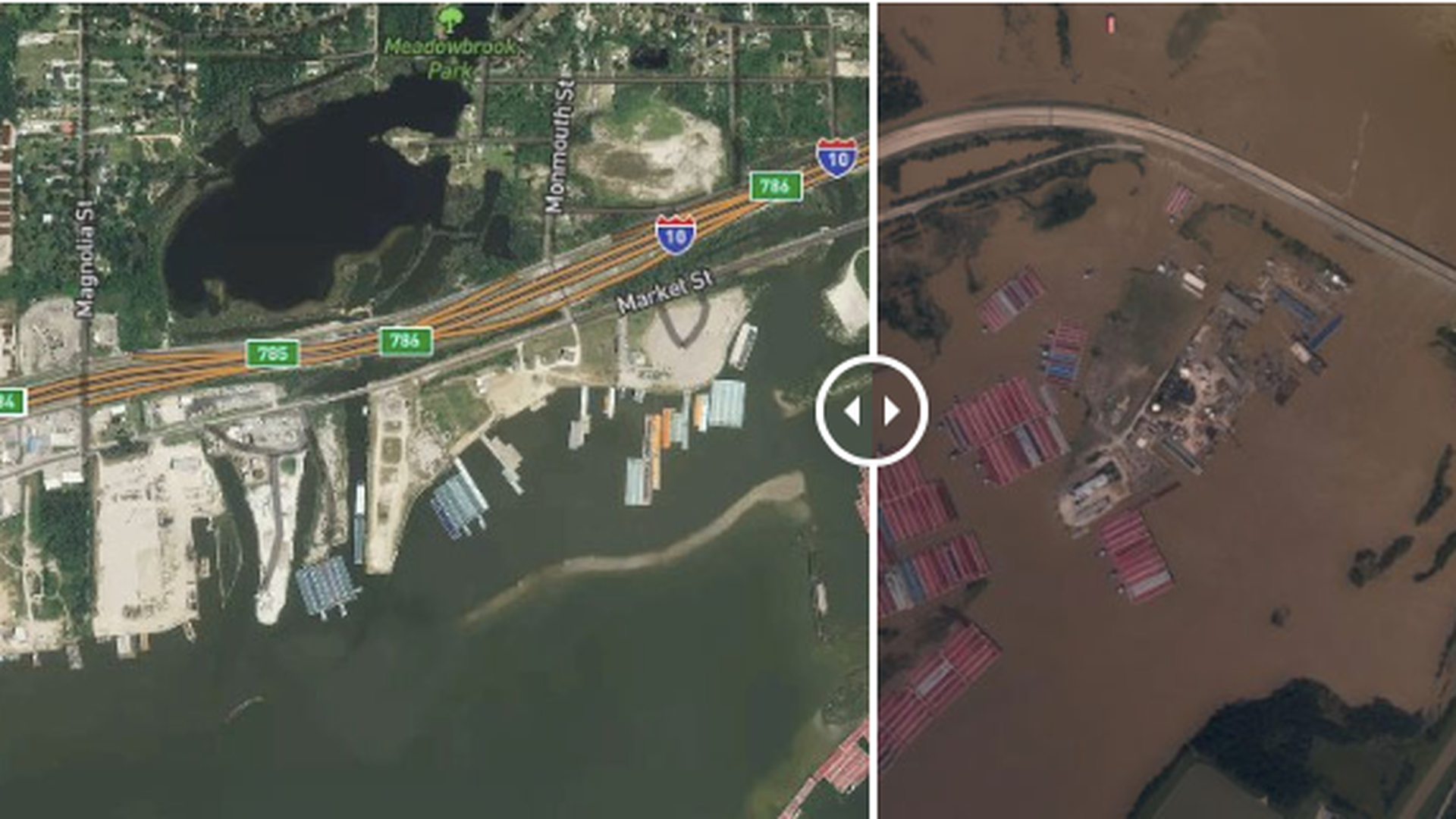 Captured from above: The National Oceanic and Atmospheric Administration has posted several before-and-after shots of Texas areas overrun with Harvey's floodwaters.