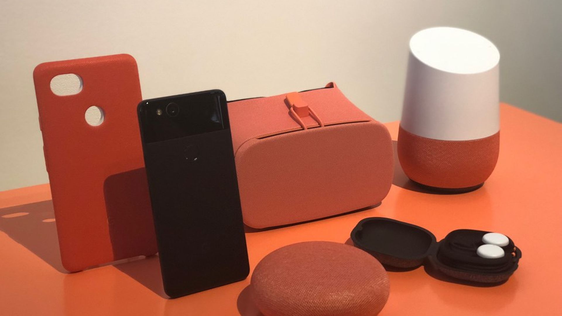 Some of the new hardware announced by Google in San Francisco. Photo: Ina Fried / Axios