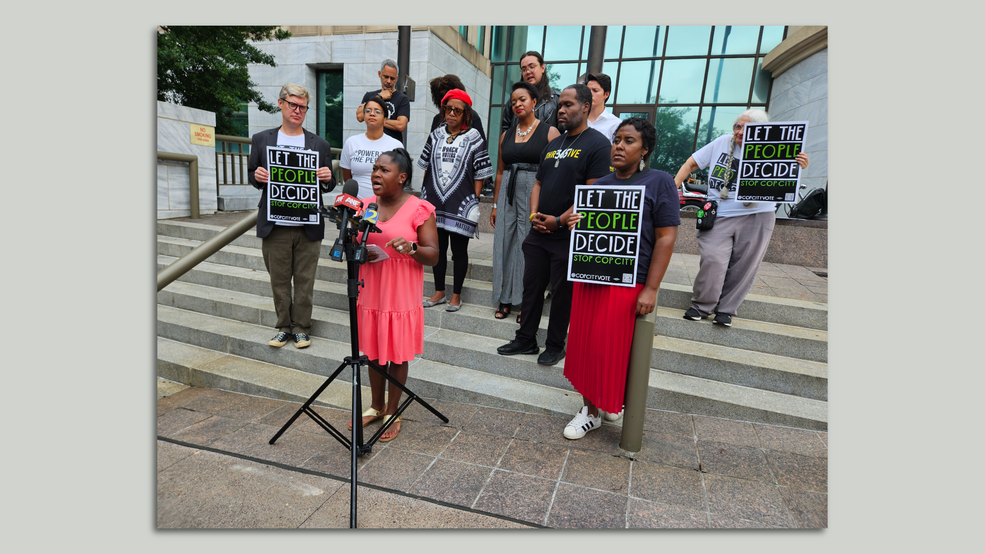Keyanna Jones, an activist with Community Movement Builders, speaks during Thursday's press conference calling on Atlanta to allow residents to vote on the Public Safety Training Center project. Photo: Kristal Dixon/Axios