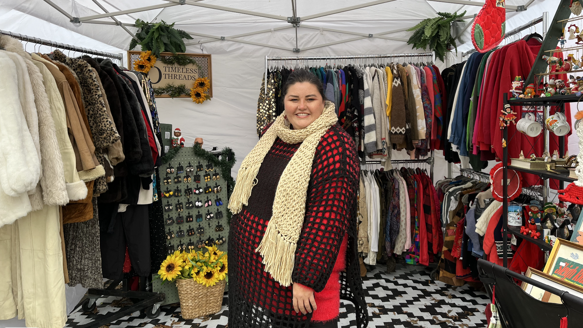 Olga Golubinskiy of OTimeless Threads at the Piedmont Park Holiday Gift Market. Photo: Emma Hurt/Axios