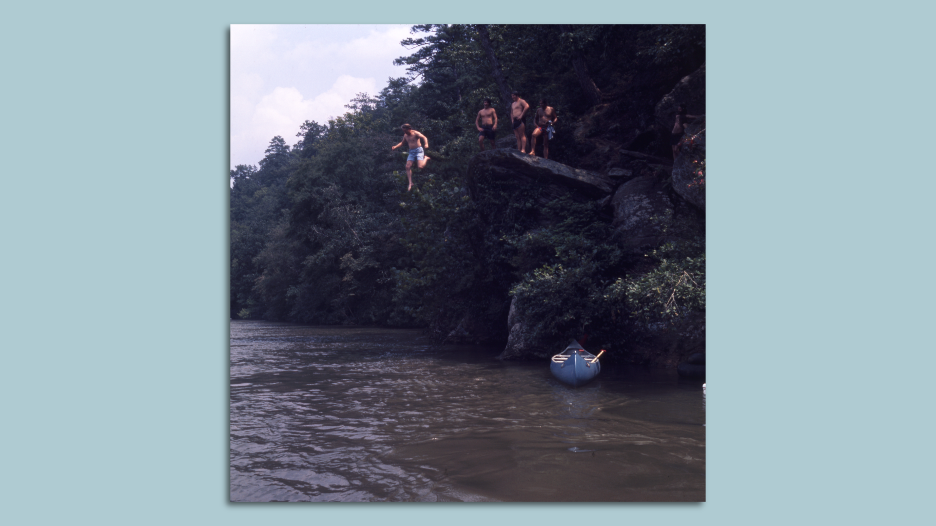 Then-Gov. Jimmy Carter jumps off a diving rock near the Palisades into the Chattahoochee River. Photo: Courtesy of Atlanta Journal-Constitution Photographic Archives, Special Collections and Archives, Georgia State University Library