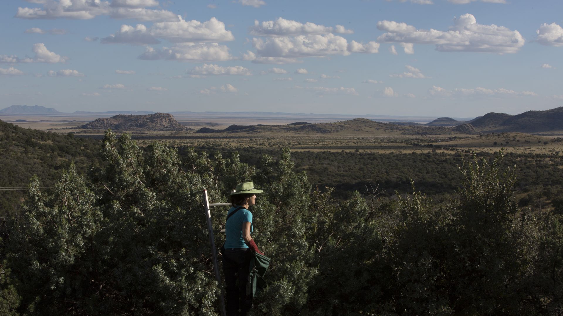 Molly Cummings forages for juniper berries overlooking West Texas' Davis Mountains. Photo courtesy of WildGins