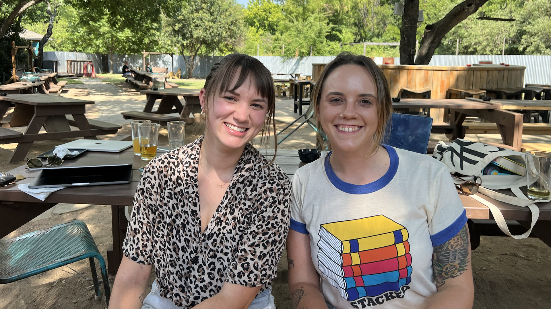 Abigail Rosenthal (left) and Katey Outka co-host a new podcast, "Fifty Percent." Photo: Nicole Cobler/Axios