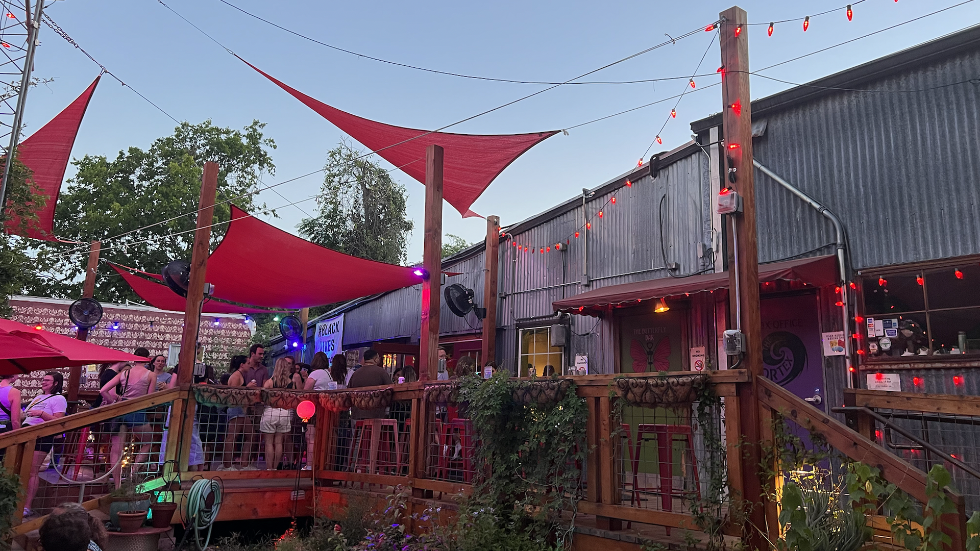 The patio of The Vortex, home to Italian food truck Patrizi's and Butterfly Bar. Photo: Nicole Cobler/Axios