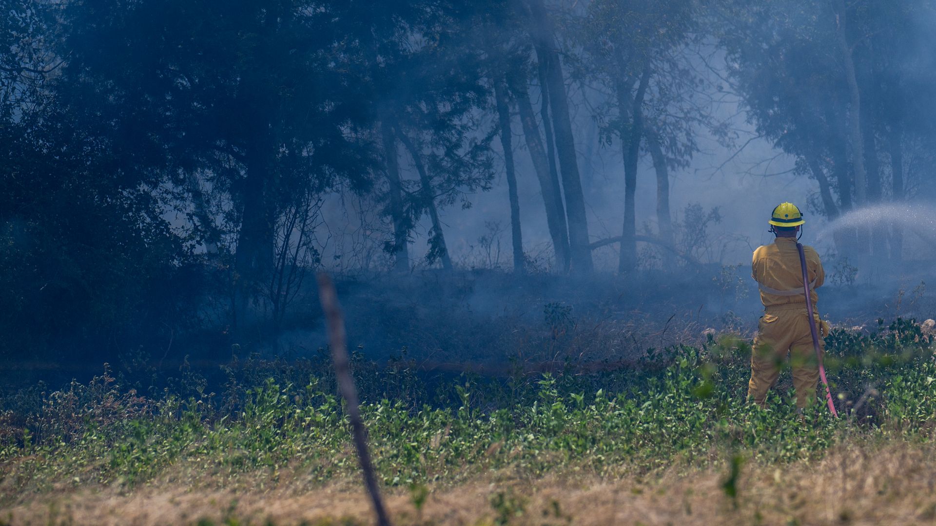 A firefighter works to put out a wildfire during an excessive heat warning on Aug. 8 in Hays County. The area continues to grapple with a prolonged heat wave and drought. Photo: Brandon Bell/Getty Images