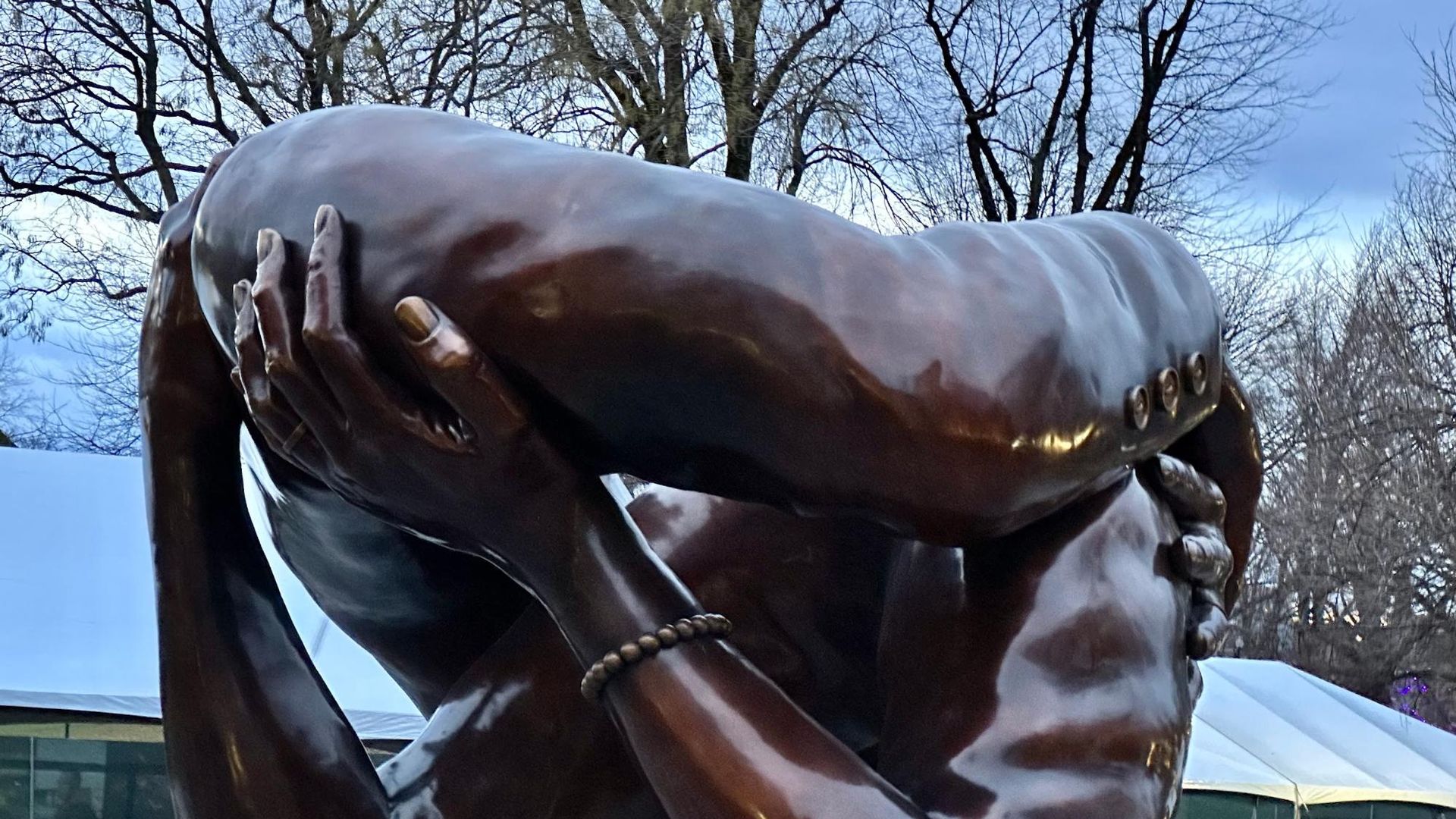 The intrigue: Conceptual artist Hank Willis Thomas designed “The Embrace,” which was erected between the Brewer Fountain and the Common visitor's center last year.