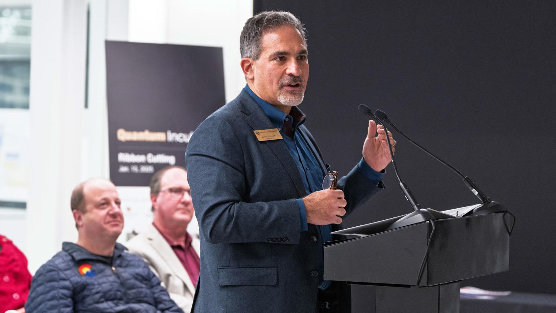 CU Boulder chancellor Justin Schwartz speaks at the Quantum Incubator on Jan. 15. Photo: Glenn J. Asakawa/University of Colorado