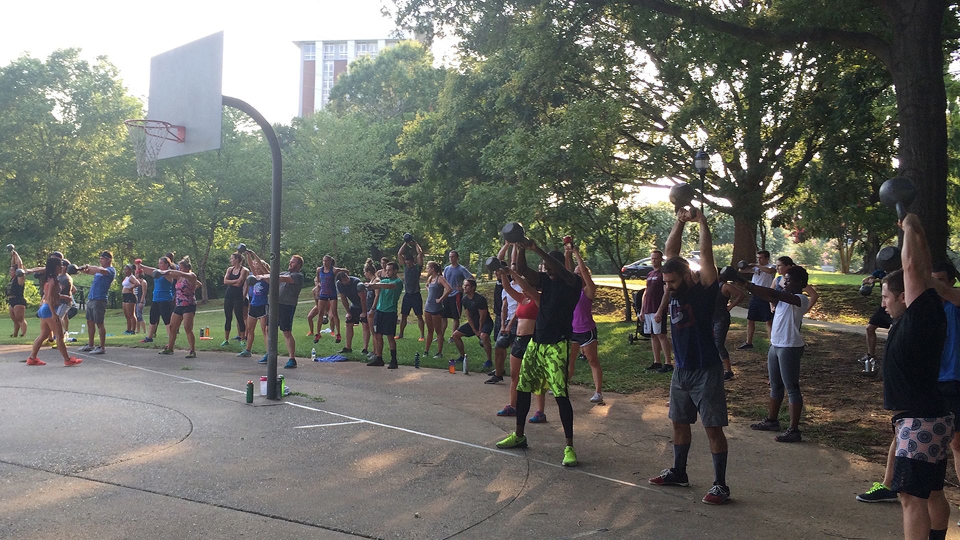 The classes take place outside – locations like Pearl Street Park or neighborhood hills – and are always within running distance from CrossFit Dilworth. Nearly all of the work is done in pairs and while kettlebells and medicine balls are used, you can pick a weight that best fits your ability.