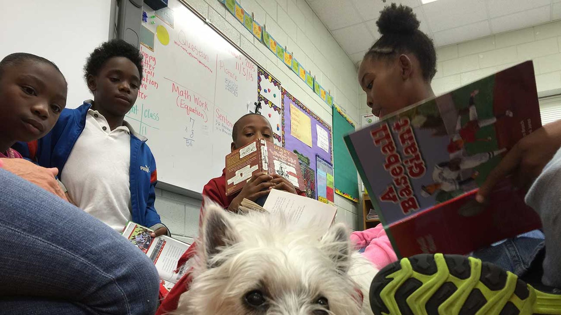 “She lets the kids pet her and play with her while they read. And she’s a very good non-critical listener,” Bell says with a smile of her 4-year-old West Highland Terrier. “And the kids just love her.”