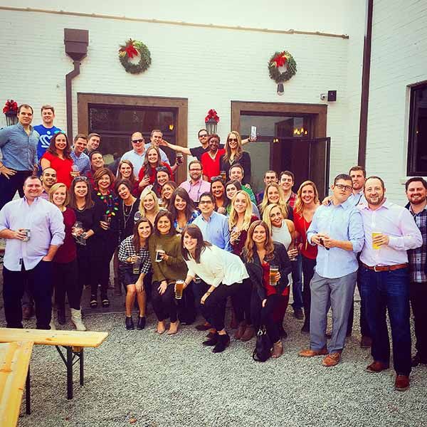 The AccruePartners team celebrates the year during their annual Christmas Party at Olde Mecklenburg Brewery – in 70 degree weather!
