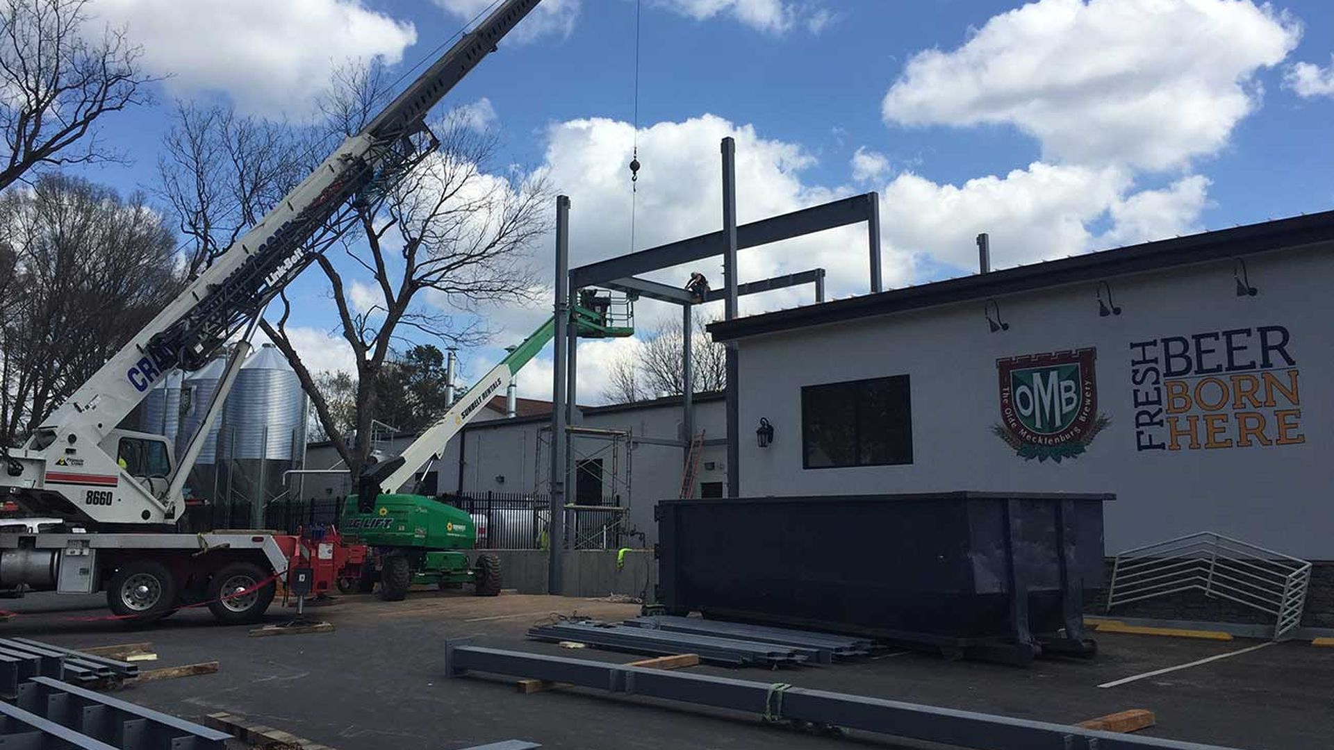 The cranes are back out at Olde Mecklenburg Brewery. This time it’s a new tank room.
