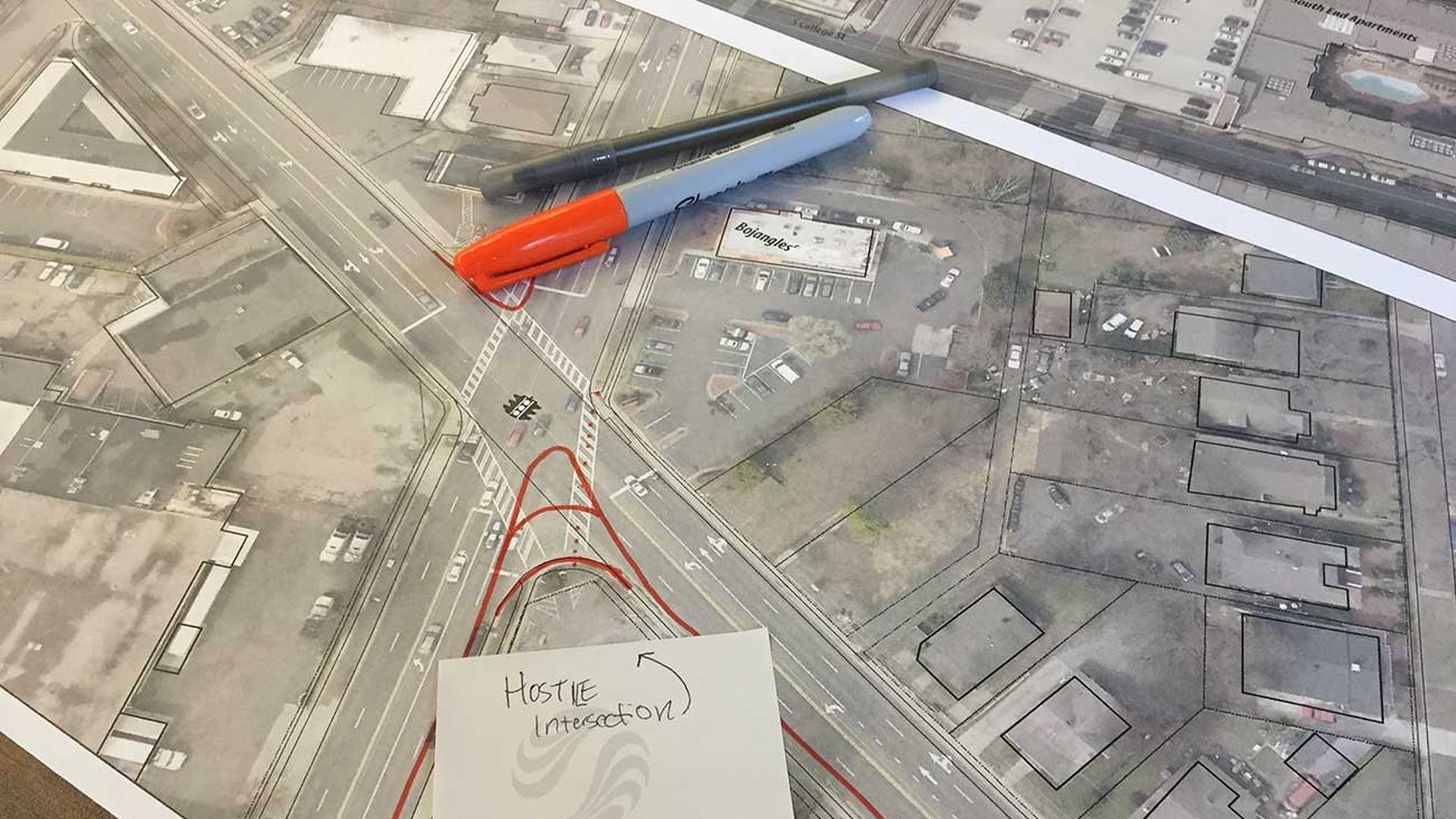 But many intersections are hard to cross, and poor sidewalk conditions and alignment make it hard to walk or bike.