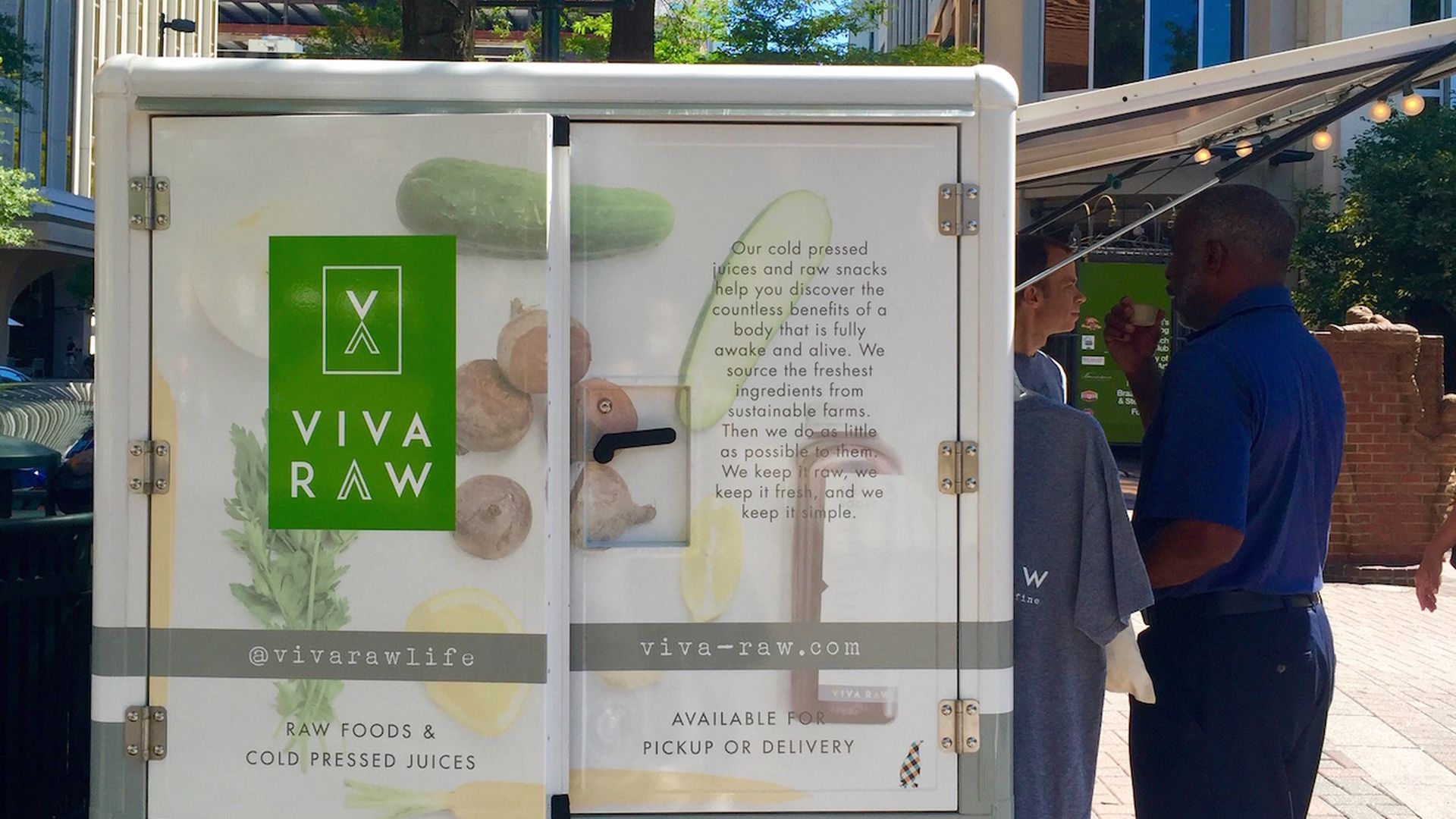 It’s an energy-efficient electric cart out of which Viva Raw is now selling their organic and vegan juices, smoothies, granola and vegan cheeses. Owner Scott Harris decided against opening a new storefront location and opted instead for this mobile cart.