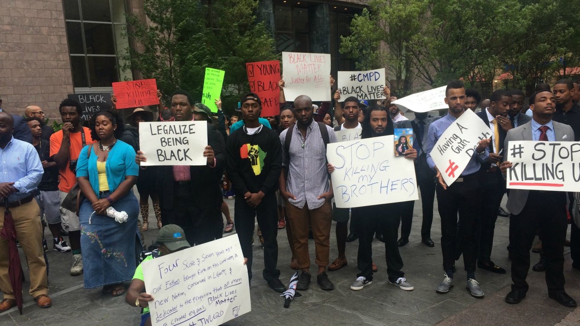 Writer’s note: I spent 4 hours marching with peaceful protestors at Trade & Tryon, Marshall Park and Little Rock AME Zion Church from 4:30 p.m. to 8:30 p.m. on Wednesday. The images in this story reflect those passionate demonstrations.
