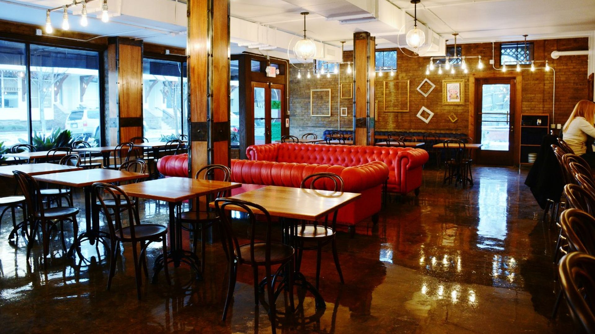 The renovated space preserves pieces of the building’s history with untouched exposed brick as well as original bathroom signs. New features include custom leather couches from CoCoCo in Cornelius and a custom handcrafted copper and mahogany bar created by owner Jaffer Kovic’s father, Hase.