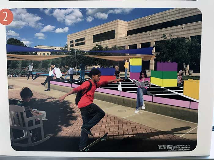 Details are still being hammered out, but key elements could include a great lawn, public art, swings, live-size Legos and games, ping pong tables, movable seating, food vendors, meeting spaces and a farmers market.