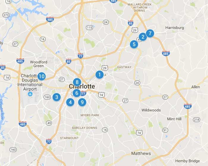 These are the top 10 towing hotspots in Charlotte.