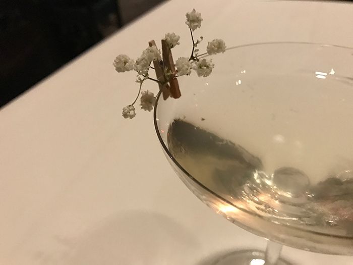 I went for a What She’s Having (chamomile infused Reyka, lavender syrup, Cocchi Moscato D’asti, hibiscus bitters and a hibiscus ice ball – $13). I’m a texture person and it wasn’t my thing – it felt too thick – but can we take a second to appreciate the garnish?