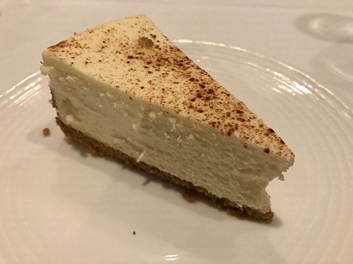 We shared an order of mushrooms ($9) and Duck Fat Fried Fingerling Potatoes with Pickled Peppers ($8) and while I picked at all of it, including his 22-ounce Porterhouse Steak (poor guy had a really rough night), the highlight of my meal was the slice of Mom’s Cheesecake we split ($8).