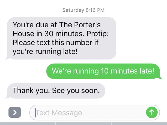 Side note: Making reservations is a breeze through Resy and they’ll send you a confirmation via e-mail and text the day you make the reservation and again the day before. The day of, you’ll get a reminder 30 minutes before and a chance to shoot them a text if you’re running late (they’ll hold your table for 15 minutes), which is useful because of who I am as a person: