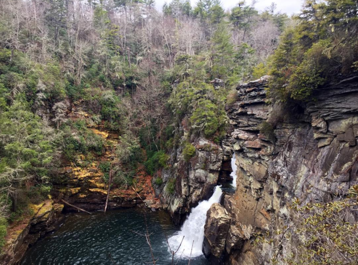 Linville River cuts through the Blue Ridge Mountains in Pisgah National Forest before dropping 45 feet into Linville Gorge. The waterfall is a popular hiking destination about 2 hours northwest of Charlotte and you can get to it using this 2-mile hike starting at the Visitor Center.