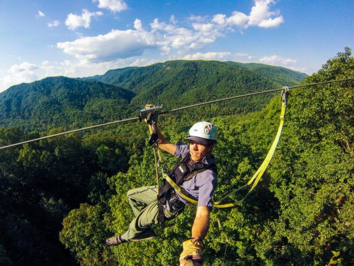 The Gorge Zipline in Saluda features 11 zip lines spanning 1.25 miles through the tree canopy where you’ll descend 1,100 vertical feet on your trip.