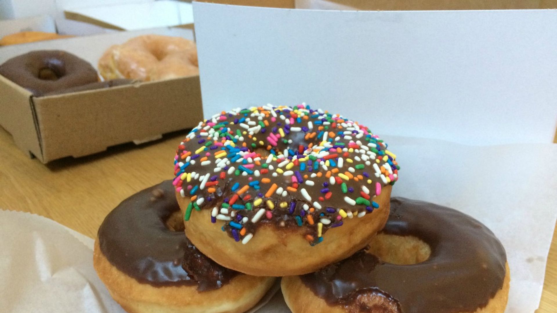 Everyone on our six-person team sampled a classic glazed and chocolate glazed doughnut from each of the six shops (it was excessive, yes) and then selected their overall top doughnut from each category.