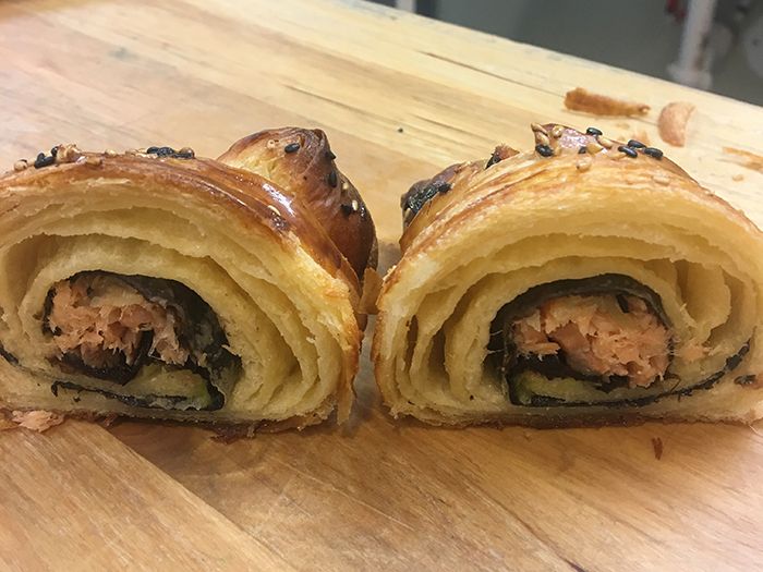 Mr. Holmes Bakehouse, out of San Francisco, recently released a croissant stuffed with salmon, seaweed, ginger and wasabi that sells for $5. On a weekend day, the bakery sells about 100.