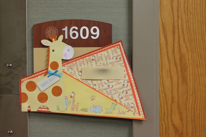 The nurses even make cute little name tags for every baby’s room by hand (name blurred for baby’s privacy, of course!). Swoon.