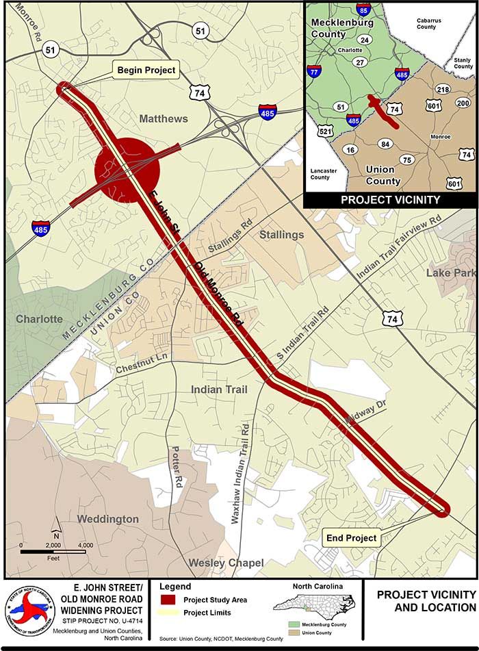 The project calls for a significant widening of East John Street — one of the primary roads constituting the Matthews downtown area — into a “superstreet” as it enters Union County.
