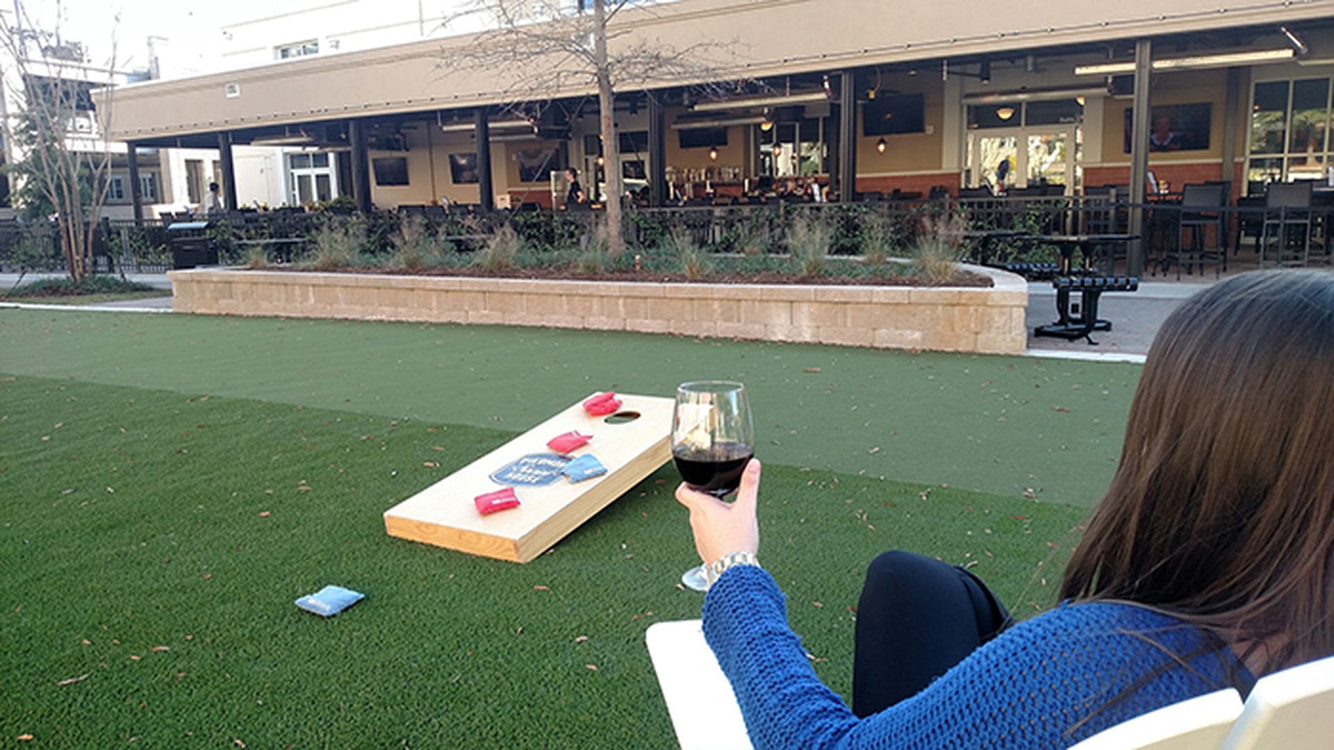 The awesome lawn for games and drinks in front of Piedmont Social House.