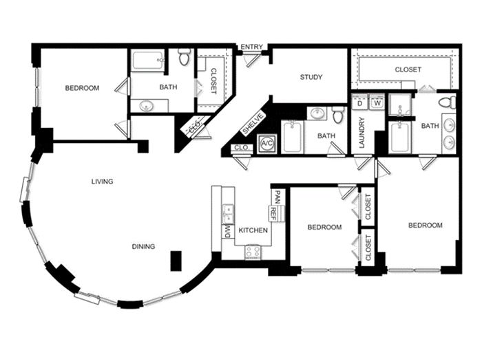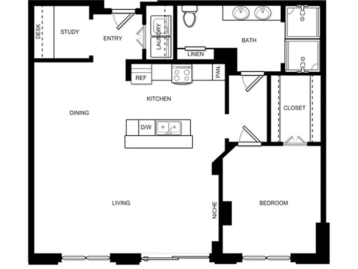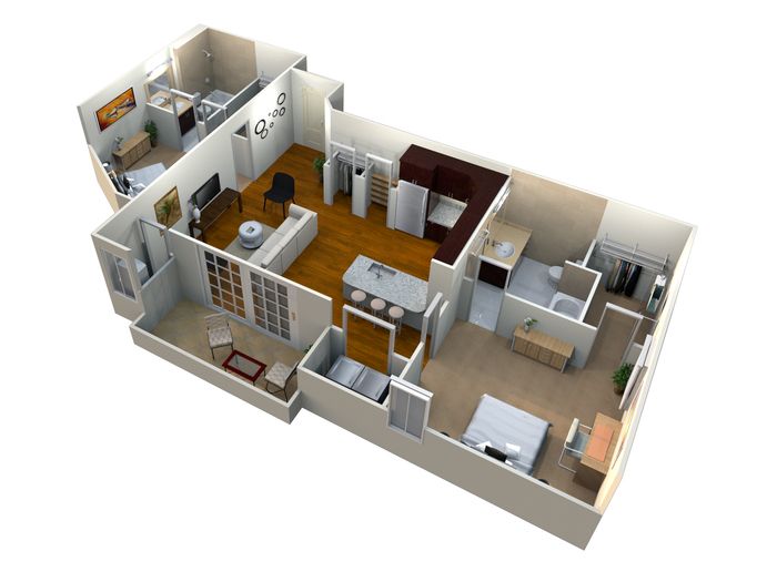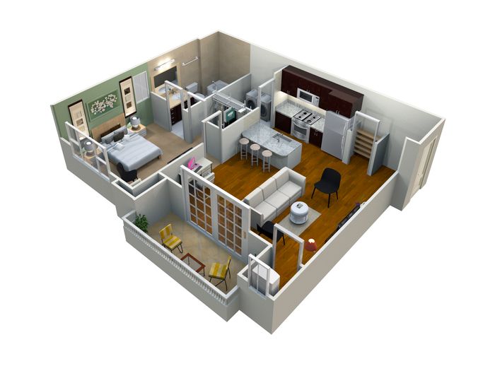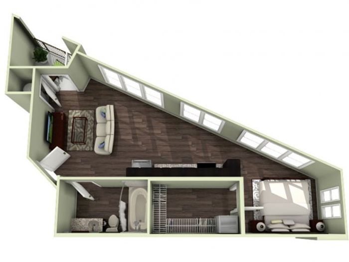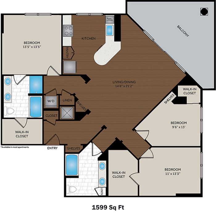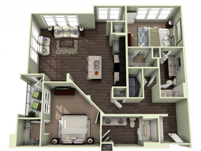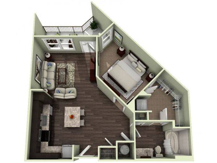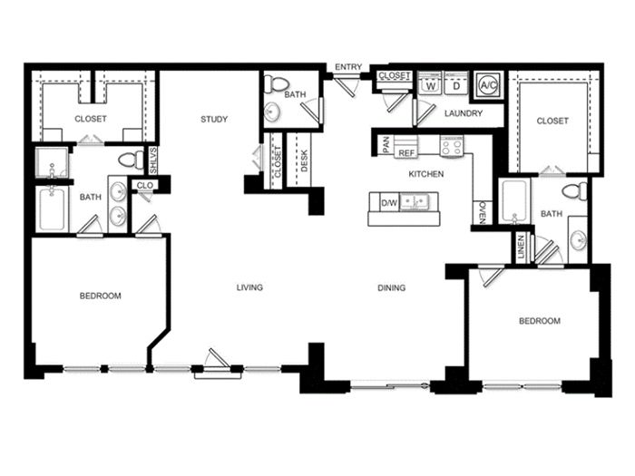 Each unit comes with a 36″ soaking tub, washer and dryer, USB outlets, granite countertops and walk-in closets. See the full list of features and check availability here.