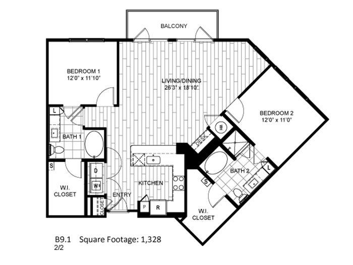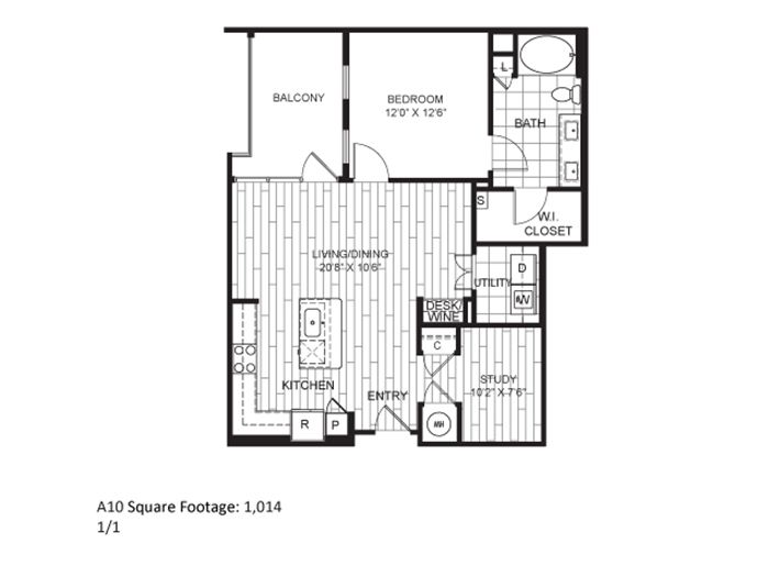 Each unit comes with walk-in closets, a balcony, 10′ ceilings, granite countertops and hardwood floors. See the full list of features and check availability here.